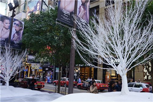 树梢上挂满了金纸包的星星和闪闪发亮的小灯泡,圣诞节如期将至,时代广场也摇身一变,成为白雪皑皑的雪乐园。小朋友们踩在细软的雪地上掟雪球、砌雪人,远远传来雪橇的铃铃声......
