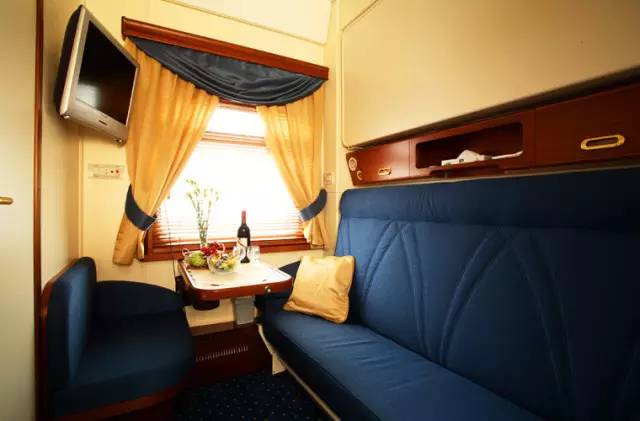 豪华对这列火车而言仅仅是标配,车厢内的装潢几乎是巴黎博览会上最高贵的材料,贵族气息十足,液晶电视、地板供暖、干湿分离的私人浴缸一应具全,每个房间还有大型落地窗可欣赏令人屏息且漫无边际的西伯利亚美景,这样的车厢彷彿有如催眠术一般,让你的思绪像车窗外的迷人风光一样漂浮联想。